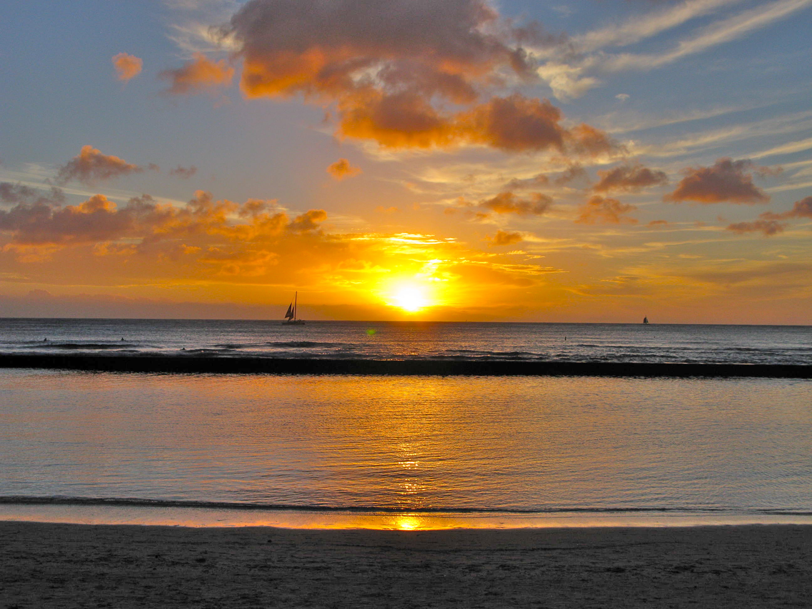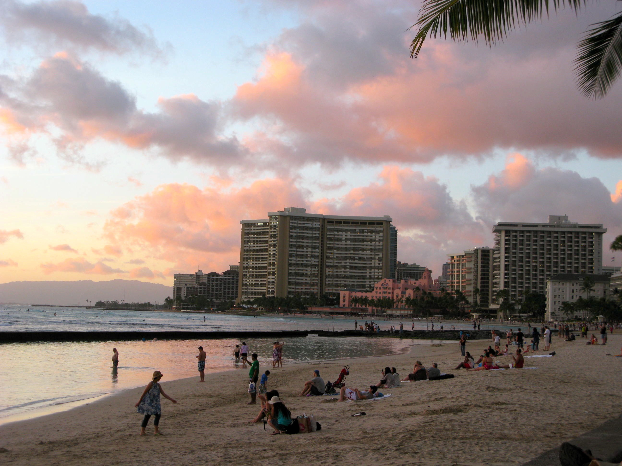 IMG_3786Every evening the sunset was spectacular and people would just hang out on Waikiki Beach for the show.  The pink hotel is one of the oldest — the Royal Hawaiian.
